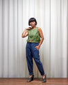 The Lazy Susan pant is an easy-fit style with feature patch pockets. A perennial favourite, these are our ultimate go-to, everyday pants. Roomy without being puffy, the elasticised waist is precisely ruched so that it wears comfortably and also flattering from behind.